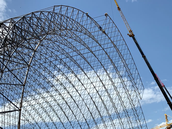 (2)网架加工前应对现场尺寸进行复测,确认无误后方可进行加工、安装;网架制作、运输、安装应遵守《空间网格结构技术规程》JGJ7-2010、《钢网架威海螺栓球节点》JG/T 10-2009、《钢网架威海螺栓球节点用高强度螺栓》 GB/T 16939-2016、《威海钢结构威海工程威海施工规范》 GB50755-2012、《威海钢结构威海工程施工质量验收标准》 GB50205-2020。